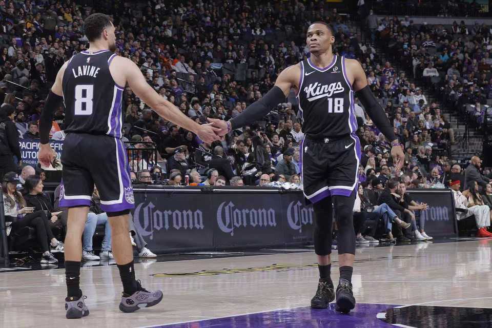 国王:德罗赞27分6篮板5助攻,阿丘瓦20分14篮板,雷诺10分,拉文5记三分25分,威少19分6篮板11助攻。